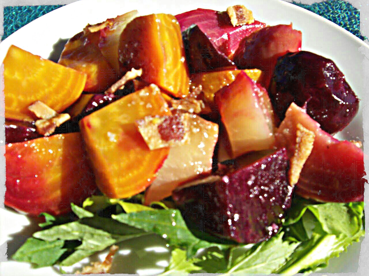 Red or Green: Sweet and Spicy Roasted Beet and Bacon Salad